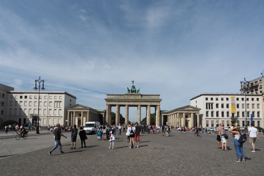 The Brandenburg Gate is a historical site completed in 1791 near the city center. Many historical events, both good and bad, have taken place at or near this location. Today, it is a symbol of peace , progress, and prosperity. When photographing the gate, I used an extreme wide angle lens to capture the whole scene. That made the monument look a lot smaller than it really is. In person, the Brandenburg Gate is a tall, prominent structure.