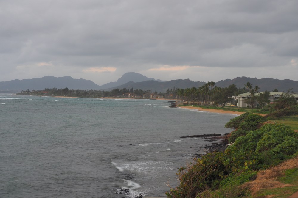 At dusk I drove out just north of Kapaa and stopped at a beach on the windward coast for some low light pictures. I parked at the end of the street and then hiked about two minutes down to the shore. The sun went down behind the mountains, not the ocean. Beautiful sunset shots with rain visible in the distance over the ocean.