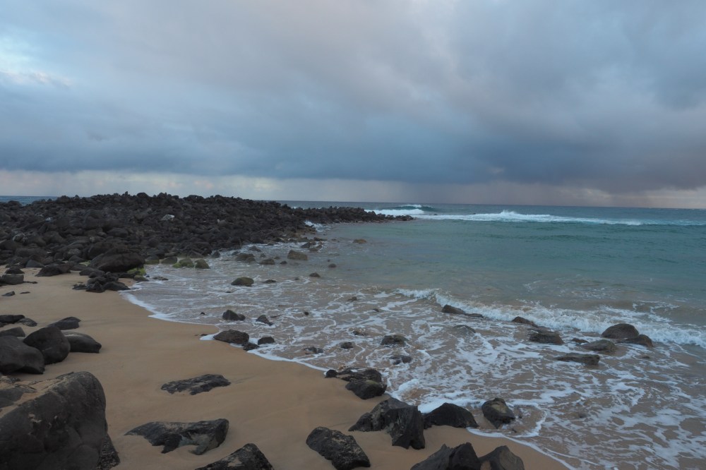 On the way back from Polihale, I stopped at Waimea Recreational Pier for more pictures. Though Kauai is known to have many miles of long, white sandy beaches, dark sand beaches exist as well…..though not in the quantities that that exist on the Big Island.