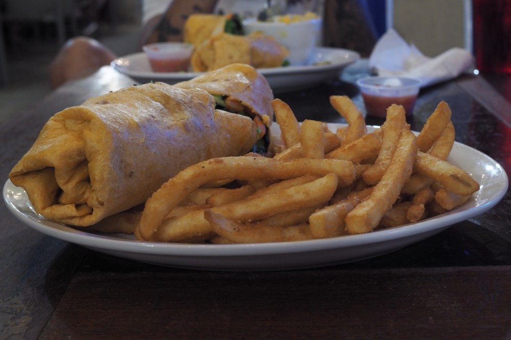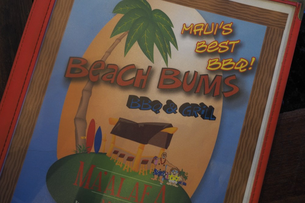 Another good place to eat is Beach Bums BBQ & Grill at Ma’alaea Bay. They have a tasty veggie wrap on the menu that didn’t make me feel like I was giving anything up by not having any meat in it.
